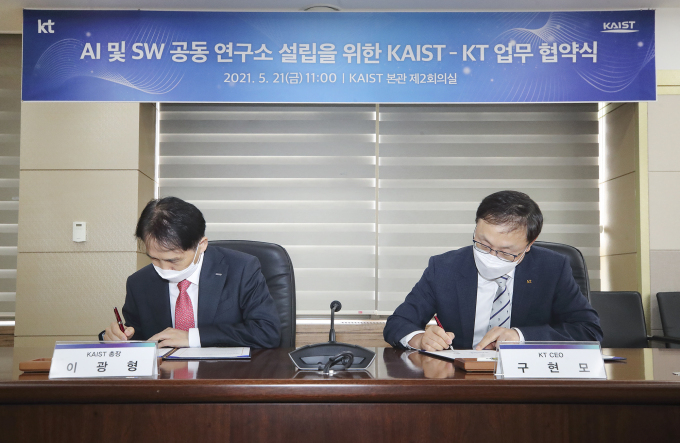 KT는 구현모 대표와 카이스트 이광형 총장이 ‘AI 및 SW공동 연구소 설립을 위한 업무협약’을 체결했다고 23일 밝혔다.