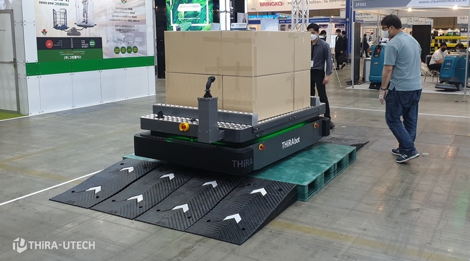 최근 비대면과 무인 자동화에 대한 중요성과 관심이 높아진 가운데 티라유텍은 전시부스에서 물류센터 직원과 협업 가능한 자율주행 물류로봇 시리즈 THiRAbot 1000, 600, 200을 선보인다.