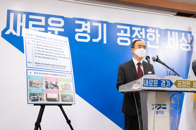 임문영 경기도 미래성장정책관은 26일 도청에서 기자회견을 열고, 소부장산업의 기술자립화 달성을 위해 추진한 경기도 소부장산업 지원사업의 중간점검 결과와 중장기 정책을 발표했다.