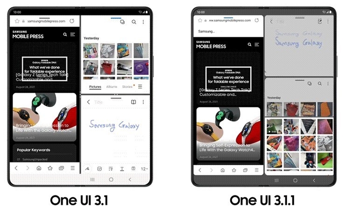삼성전자는 최신 폴더블 스마트폰인 ‘갤럭시 Z 폴드3’와 ‘갤럭시 Z 플립3’에 One UI 3.1.1을 적용했다. One UI 3.1.1은 폴더블폰을 위한 직관적인 사용자 인터페이스(UI)로, 사용자가 폴더블폰 특유의 대화면과 폼팩터를 더욱 유용하게 활용할 수 있도록 해준다.