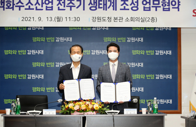[더테크 뉴스] 강원도는 13일 SK와 함께 강원도 액화수소산업 전주기(생산-유통-소비) 생태계 조성을 위한 상호협력에 관한 업무협약을 체결했다고 밝혔다.