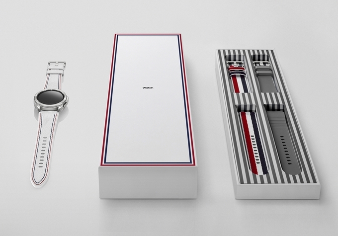 이번 에디션은 실버 색상의 42mm 갤럭시 워치4 클래식 블루투스 모델로 출시되며 △톰브라운의 정교한 박음질 디테일이 적용된 화이트 가죽 스트랩 △톰브라운 시그니처 색상이 적용된 패브릭 소재 스트랩 △불소고무(FKM) 소재의 그레이 색상 스트랩 등 사용자의 스타일에 따라 교체 가능한 3가지 스트랩과 워치 충전기가 함께 제공된다.