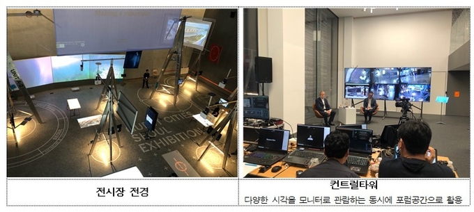 이번 전시는 팬데믹 영향으로 해외 도시의 적극적인 참여를 기대하기 어려운 점을 예상하여 다양한 높이의 ‘타워’라는 영상 구현을 이끄는 시각화된 매개체를 설계하여 전시의 재미를 이끌었으며, 로봇 청소기, 관람자, 타워, 새 등의 높낮이가 다른 카메라를 통해 다양한 시선에서의 전시를 관람할 수 있다.