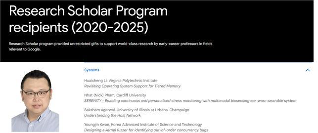 이러한 혁신성을 인정받아 권영진 교수는 구글이 전 세계 신진 교수 대상 혁신적 연구를 지원하는 ‘Google Research Scholar Award(시스템 분야)’를 수상했다. 이 프로그램은 글로벌 수백 명의 지원자 중 극소수만 선정되는 고난도 심사 체계를 갖춘 것으로 알려져 있으며, 국내 수상 사례도 흔치 않다.