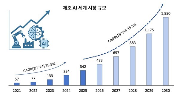 전 세계 제조 기업들은 이미 AI 중심의 혁신 경쟁에 진입했다. 시장조사기관 마켓앤드마켓츠에 따르면 제조 AI 시장은 2025년 342억 달러에서 2030년 1,550억 달러로 성장하며 연평균 35% 이상 증가할 것으로 전망된다. 미국, 유럽, 일본, 중국 등 주요 제조 강국들은 국가 전략과 산업 정책을 총동원해 AI 기반 제조혁신 경쟁을 가속하고 있다.
