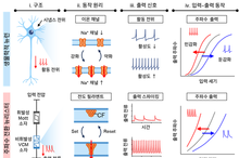 [더테크 이지영 기자] 국내 연구진이 뇌의 적응 능력을 반도체로 구현한 초저전력 인공지능 하드웨어 기술을 개발했다. 단순히 신호를 주고받는 수준을 넘어, 신경세포가 상황에 맞춰 스스로 반응을 조절하는 ‘내재적 가소성(intrinsic plasticity)’을 반도체에 담아낸 것이다. KAIST(총장 이광형)는 신소재공학과 김경민 교수 연구팀이 뉴런이 과거 활동을 기억하고 반응 특성을 조절하는 원리를 모방해 ‘주파수 스위칭(Frequency Switching) 뉴리스터(Neuristor)’를 개발했다고 28일 밝혔다. ‘내재적 가소성’은 같은 자극이 반복되면 점점 무뎌지거나, 반대로 훈련을 통해 더 민감하게 반응하는 뇌의 적응 기능이다. 연구팀이 개발한 뉴리스터는 이런 과정을 반도체 단일 소자로 구현해 신호의 빈도를 스스로 조절할 수 있다. 이번 소자는 순간 반응 후 원래 상태로 복귀하는 ‘휘발성 모트 멤리스터’와 입력 흔적을 오래 저장하는 ‘비휘발성 멤리스터’를 결합해, 뉴런의 발화 주파수를 자유롭게 조절한다. 뉴런 스파이크 신호와 멤리스터 저항 변화가 상호작용하면서 사람이 자극에 익숙해지거나 민감해지는 뇌의 반응을 그대로 모사한다. 효과 검증을 위해 연구팀