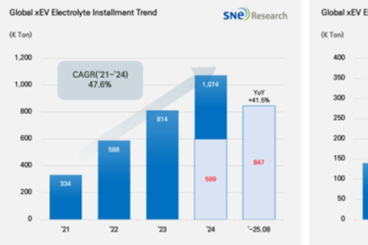 • 글로벌 전해액 시장, 전기차 수요 확대에 41.5% 성장