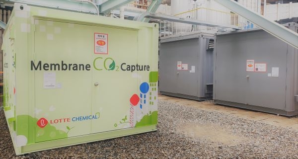 또한, 롯데케미칼은 국내 기술 강소기업과의 협력을 통해 이산화탄소 포집 상용화 기술 을 공동 연구한다. 관련 기술의 국산화를 추진하고, 대기업과 중소 기술 기업의 그린 생 태계 조성의 협력 사례를 만들어 가기 위해 고분자 기체분리막 원천 기술을 보유한 ㈜에 어레인과 MOU를 지난해 체결했다.