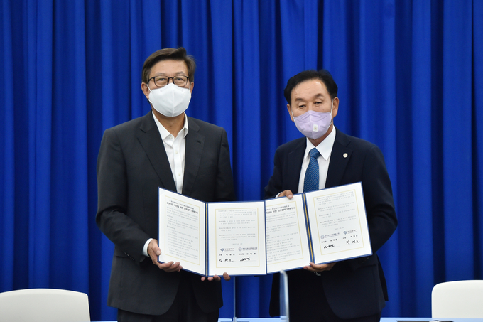 ![박형준 부산시장(왼쪽)과 부산로봇사업협동조합 유학현 이사장이 업무협약 체결 후 기념사진을 찍고 있다. [사진=부산시]](http://www.the-tech.co.kr/data/photos/20210623/art_16231300263033_4d67bf.jpg)