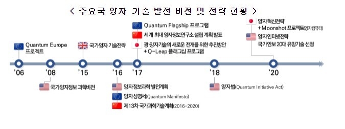 양자정보통신은 미래 산업의 전환을 이끌 핵심기술로서 미국, 유럽(EU), 일본 등 전 세계 주요 국가들이 경쟁적인 투자를 진행하고 있으나, 국내의 경우 기술적 난이도가 높고 산업 기반이 미약하여 정부 차원의 체계적인 지원이 필요하다는 지적이 있었다.