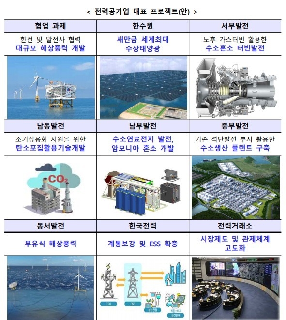 특히, 전력공기업은 대규모 해상풍력, 수소터빈 발전, 수소생산 플랜트 구축 등 “탄소중립 대표 프로젝트”를 추진하겠다고 밝혔다.