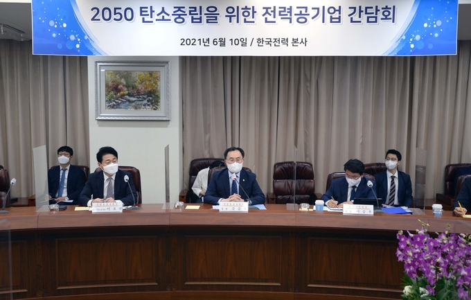 문 장관은 이날 전남 나주 한국전력 본사에서 열린 '2050 탄소중립을 위한 전력공기업 간담회'에서 "전력공기업이 탄소중립을 견인을 위해 전력공급과 전달, 산업생태계 등 3대 분야를 선도적으로 혁신해야 한다"고 밝혔다.