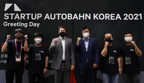![지난 11일 서울시 마포구 문화비축기지에서 열린 '스타트업 아우토반' 그리팅 데이에서 메르세데스-벤츠 코리아 토마스 클라인 대표이사 사장(왼쪽 세번째), SK 텔레콤 하형일 코퍼레이트2센터장(왼쪽 네번째) 등 참석자들이 기념촬영을 하고 있다. [사진=벤츠 코리아]](http://www.the-tech.co.kr/data/photos/20210623/art_16235452536449_a8b5c8.jpg)
