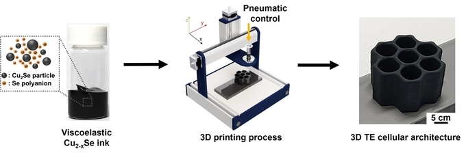 UNIST(울산과학기술원)는 신소재공학과 손재성·채한기 교수팀과 애리조나 주립대 권범진 교수이 열전소재인 구리-셀레나이드(Cu2Se)를 벌집 형태로 3D 프린팅해 발전기 내구성과 효율을 높이는 기술을 개발했다고 15일 밝혔다.