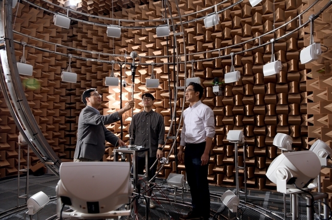 공동연구팀은 다양한 음향데이터를 구현하기 위해 56개 스피커를 구 형태로 실험실에 설치했다. 이 가운데 여러 개의 스피커에서 특정 소리를 내면 개발한 알고리즘으로 위치와 크기를 추적해 이를 지도처럼 시각화한다. 기존 방법보다 10배 이상 정확하며, 연산시간을 10분의 1로 크게 단축했다.