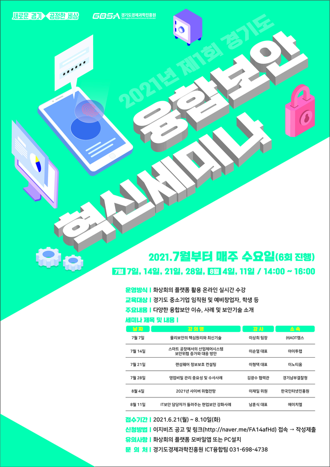 [더테크 뉴스] 경기도는 오는 7월 7일부터 8월 11일까지 매주 수요일마다 총 6회에 걸쳐 보안분야 전문가 초청 온라인 융합보안 혁신세미나를 진행할 예정이다고 4일 밝혔다.
