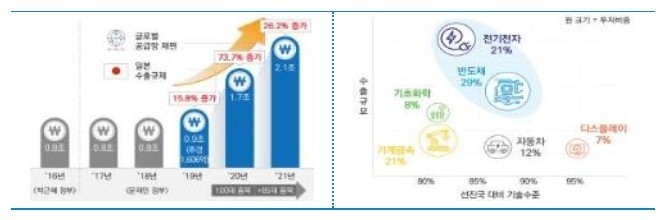 먼저, 주력산업의 핵심기술 확보 차원에서 5년 내 반도체, 자동차, 디스플레이 등 100+85대(대(對)일+대(對)세계) 연구개발핵심품목 기술 자립을 위한 ‘국가핵심소재연구단’(’21년 57개)을 집중 지원하고 있다.
