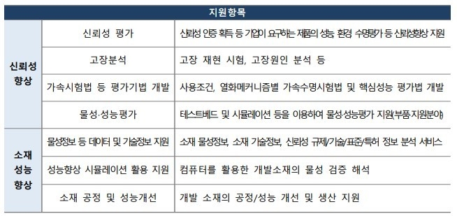 우선 소부장 관련 타 지원사업과의 중복성을 최소화하기 위해 인력양성, 수출지원 등 전주기 지원에서 신뢰성 및 소재성능 향상 지원 중심으로 개편하여 집중 지원한다.