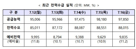 산업부는 최근 무더운 날씨로 냉방용 전력수요가 증가하고, 국내 경제회복에 따른 산업생산 증가 등이 복합 작용하면서 전력수요가 크게 증가하고 있다고 분석했다. 이러한 상황에도 전력수급 예비율은 10% 이상 수준을 기록하며 안정적으로 관리․유지하였다고 밝혔다.