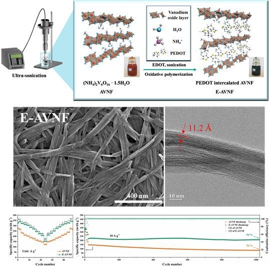 이렇게 개발된 섬유형 나노 복합체는 결정 면 사이에 삽입된 전도성 고분자에 의해 높은 전기전도도를 가지며, 1000번의 충·방전에서도 94%의 우수한 용량을 유지했다.
