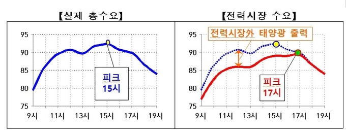 한전PPA·자가용 태양광발전이 여름철 전력소비가 집중되는 14~15시 실제 총수요를 상쇄하면서 전력피크 시간은 과거 14~15시에서 16~17시로 이동하고 있는 것으로 분석됐다.