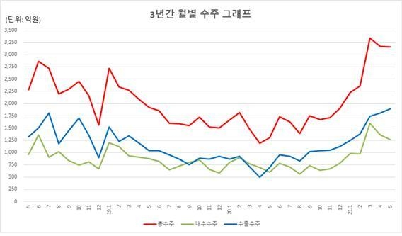 한국공작기계산업협회가 발표한 <5월 공작기계 시장동향>에 따르면, 5월 5월 공작기계 수주는 3159억 원으로 전월 대비 0.3% 감소했으나, 전년 동월 대비로는 142.8% 증가하며 호실적을 이어갔다.