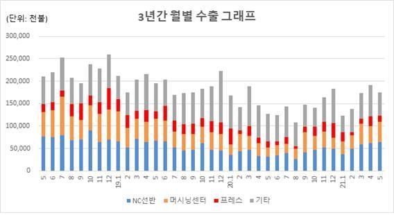 한국공작기계산업협회 관계자는 “5월 공작기계 시장은 경기 회복 기대감으로 설비투자와 소비 심리 개선으로 수주, 생산, 수출 모두 전년 동월 대비 상승으로 회복세를 보였다. 그러나 수주를 제외하고는 2019년 동기와 비교해보면 여전히 부진하다”며 “경기 호조세도 둔화되고 있어 앞으로 시장을 예의주시할 필요가 있다”고 밝혔다.