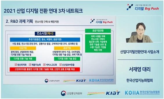 산업 디지털 전환 연대는 산업의 데이터를 공유, 활용하고 디지털 혁신기술과 연계·융합을 통해 새로운 비즈니스(서비스) 모델과 부가가치를 창출하기 위해 20년부터 구축된 협업 연대로, 각 산업의 DX 방향을 수립하고 관련 R&D 과제를 기획하고 성공사례를 발굴한다.