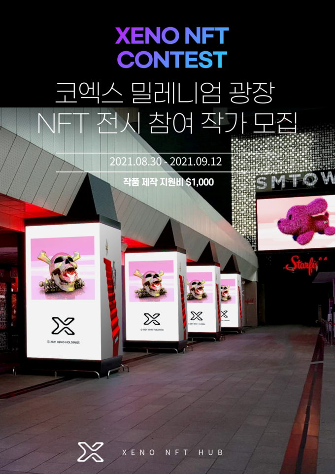 [더테크 뉴스] 제노홀딩스(Xeno Holdings)는 30일 ‘제1회 제노 NFT 아트 콘테스트’를 개최한다고 밝혔다. 수상 작품은 삼성역과 코엑스 옥외 디지털 디스플레이에 전시된다.