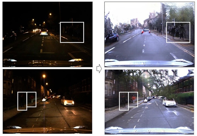 한국광기술원 지능형광IoT연구센터 박안진 박사팀이 이번에 개발한 ‘인공지능 기술을 이용한 저조도 야간-주간 영상변환 기술’은 야간 환경에서 보행자/차량 인식, 경로 예측, 도로표지판 같은 고정 객체 인식, 도로 상황 인식 등 자율주행에서 요구되는 난제를 해결한 기술로 평가된다.