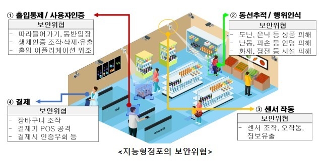 감지기 작동 단계는 카메라나 화재감지, 움직임감지 감지기 등 각종 사물인터넷 기기에서 전송되는 데이터 등 보안을 확인한다. 결제 단계는 결제정보 위변조, 결제우회 등 보안위협을 제거한다.