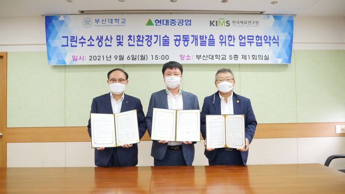 재료연을 비롯한 3개 기관은 지난 9월 6일 부산대학교 본관에서 업무협약식을 개최하고 그린수소생산시스템 및 친환경기술 공동개발을 약속했다.