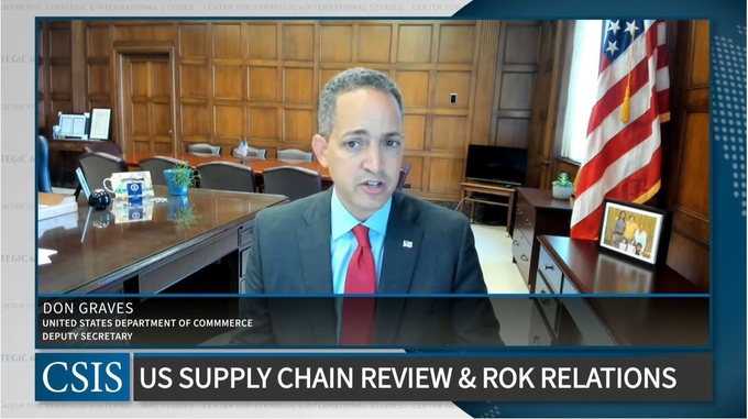 돈 그레이브스 미 상무부 부장관은 기조연설에서 “코로나19로 취약점이 드러난 반도체, 배터리 산업의 공급망을 회복하는 데 한국과 같은 동맹과 협력하는 것이 필수적”이라고 말했다. 이어 “문재인 대통령이 미국을 방문했을 때 삼성전자, SK하이닉스가 미국 내 투자 확대 계획을 발표했다”면서 “한국과 미국의 협력은 이미 비즈니스상에서 잘 진행되고 있으며, 향후에도 상호 발전을 위한 양국간 투자가 이어지길 기대한다”고 덧붙였다.