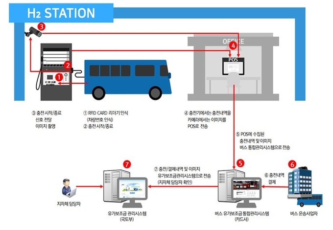 국토교통부는 수소버스 연료보조금 지급에 앞서 신용카드사와 합동으로 연료보조금 관리시스템과 수소충전소 내 시스템을 개편 24일 하고 원활하게 보조금을 지급하기 위하여 지자체 담당자와 버스 운송사업자를 대상으로 교육자료를 지난 14일 배포했다.