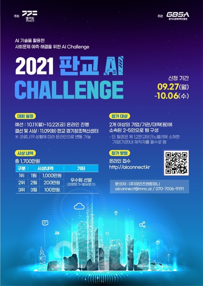 [더테크 뉴스] 경기도는 10월 6일까지 사회문제 해결을 위한 ‘판교 AI Challenge(인공지능 챌린지)’ 접수를 진행한다고 밝혔다.