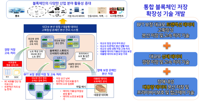 또한, 비잔틴 장애 내성을 보장하는 데이터 분산 저장기술도 개발한다. 기존에는 외부 스토리지에 대규모, 대용량 데이터를 저장해야 했다.