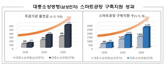 특히 삼성전자는 ‘18~’20년까지 총 300억을 출연(정부 매칭금액 300억)해 1,416개 중소기업에 삼성제조 노화우 전수를 통한 맞춤별 스마트공장 구축을 모범적으로 지원하고 있다.