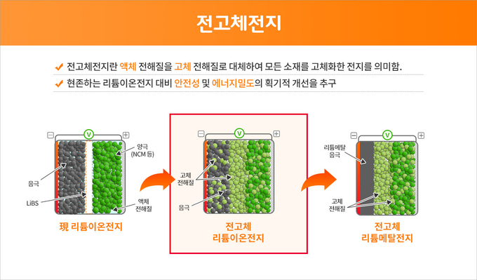 전고체 배터리는 현재 배터리에 적용되는 액체 전해질을 고체 전해질로 대체한 배터리를 말한다. 화재에 민감한 액체 전해질 대신 고체 전해질을 적용하면 화재 위험이 현저히 줄어든다. 또, 배터리 무게와 부피도 줄어들어, 리튬이온 배터리가 갖고 있는 용량 한계를 뛰어넘을 수 있는 등 장점이 있어 주목받고 있다.