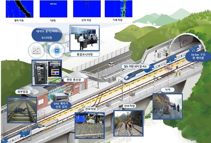더불어 인공지능 기반 데이터 분석 기술을 적용한 이 시스템은 열차운행정보, 침입자, 보수공사, 낙석, 광케이블 손상 등이 발생한 위치와 이벤트를 분류하여 관리자에게 전달함으로써 안전사고를 미연에 방지할 수 있다.