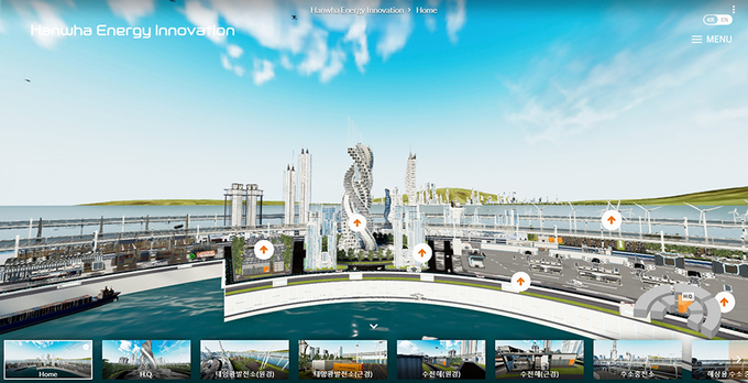 이를 통해 가상전시관 방문객들이 태양광발전소, 수전해 시스템, 수소충전소와 충전시스템, 수소탱크(트럭, 드론, 버스), 수소가스터빈발전소, 수소연료전지발전소 등 한화그룹 수소사업 분야 밸류체인별 주요시설과 설비들을 직접 둘러볼 수 있도록 했다.