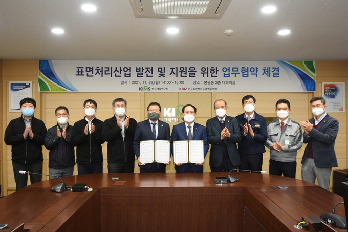 [더테크 뉴스] 한국재료연구원이 한국표면처리공업협동조합과 함께 표면처리산업 지원을 위한 업무협약을 체결했다. 양 기관은 11월 22일 창원시 성산구 소재 한국재료연구원 본관 대회의실에서 표면처리산업 지원과 관련한 상호협력방안 모색 등 포괄적 업무제휴 협약을 체결하고 이를 성실히 이행할 것을 약속했다.