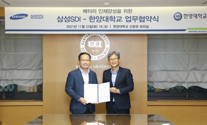 한양대와 삼성SDI는 지난 11월 23일 서울 성동구 서울캠퍼스에서 ‘한양대-삼성SDI 배터리 인재양성과정(HYU-Samsung SDI Battery Track, 이하 HSBT)’ 협약을 체결했다.