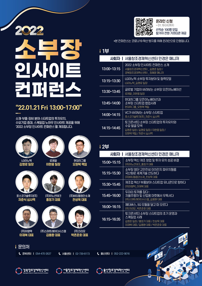 [더테크 뉴스] 경북창조경제혁신센터(이하 경북혁신센터)와 서울창조경제혁신센터(이하 서울혁신센터), 울산창조경제혁신센터(이하 울산혁신센터)는 오는 1월 21일 소재·부품·장비(예비)창업기업을 위한 투자유치, 수요기업 증대, 스케일업 노하우 공유의 장 ‘2022 소부장 인사이트 컨퍼런스’를 개최한다.