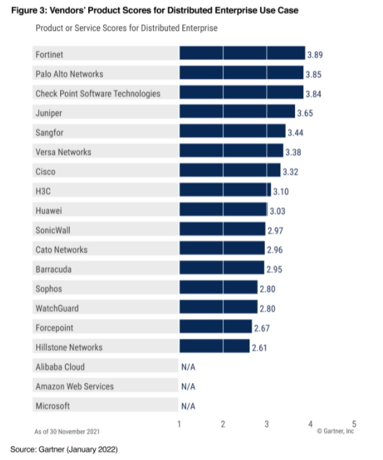포티게이트 솔루션은 엔터프라이즈 데이터 센터, 분산 엔터프라이즈 엣지, 중소기업(SMB) 총 3가지 적용 사례에서 모두 가장 높은 점수를 받았다.