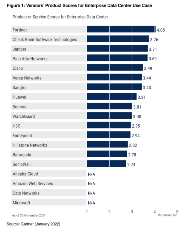 포티넷은 고성능 네트워크 방화벽 기술을 통해 엔터프라이즈 데이터 센터 적용 사례에서 3년 연속 최고 점수를 기록했다. 포티게이트 네트워크 방화벽에 내장된 네트워킹 및 보안 기술은 기업 및 고객의 데이터와 애플리케이션은 물론, 데이터 센터 서비스 엣지를 보호하면서 하이퍼스케일급 보안-중심(security-driven) 네트워크를 구현할 수 있도록 지원한다.