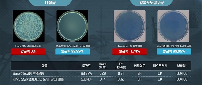 현재 시중에 나와 있는 항균필름 및 항균코팅 제품은 엘리베이터 버튼, 문손잡이, 터치스크린 등에 광범위하게 사용되고 있지만, 투명성이 낮고 잦은 사용으로 필름이 쉽게 훼손되어 소재가 가진 항균 지속성이 오랫동안 유지되기 어렵다. 또한 기존 제품에 필름을 추가 부착하거나 필름을 제작하기 위한 추가 공정이 요구되는 번거로움도 존재한다.