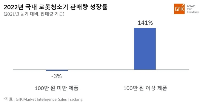 기본적인 기능의 로봇 청소기보다 많게는 2배 이상 비싼 제품들임에도 청소에 걸리는 시간과 노동에서 더 자유로워질 수 있도록 하는 하이엔드 기능을 원하는 소비자층은 더 확대되며 높은 판매 성장을 보였다. 2022년 100만원 미만의 제품의 판매 수량은 3% 감소했지만, 100만원 이상 프리미엄 제품의 판매는 141% 증가하며 로봇 청소기 시장의 성장을 이끌었다.