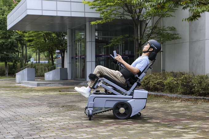연구팀은 평행 사변형 구조의 독특한 기구구조와 자중보상기술(로봇 자체 무게에 의해 발생할 필요 토크를 최소화하는 기술)을 적용해 휠체어에 탑승한 상태에서 △일어서기 △눕기 △앉은 채로 앞뒤로 기울이기 △좌석 높이 조절 등 자세 변환이 가능한 스탠딩 모듈을 개발했다.