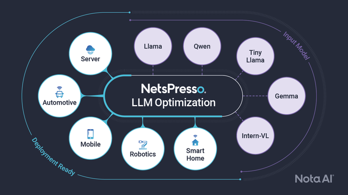 이번 전시에서 노타는 저전력 디바이스에서도 대규모 언어모델(LLM)과 비전언어모델(VLM)을 최적화할 수 있는 서비스를 선보인다. 이 기술은 모델의 성능을 유지하면서도 추론 속도를 비약적으로 향상시켜, GPU 서버나 고전력 인프라 없이도 고성능 AI를 실행할 수 있게 한다.