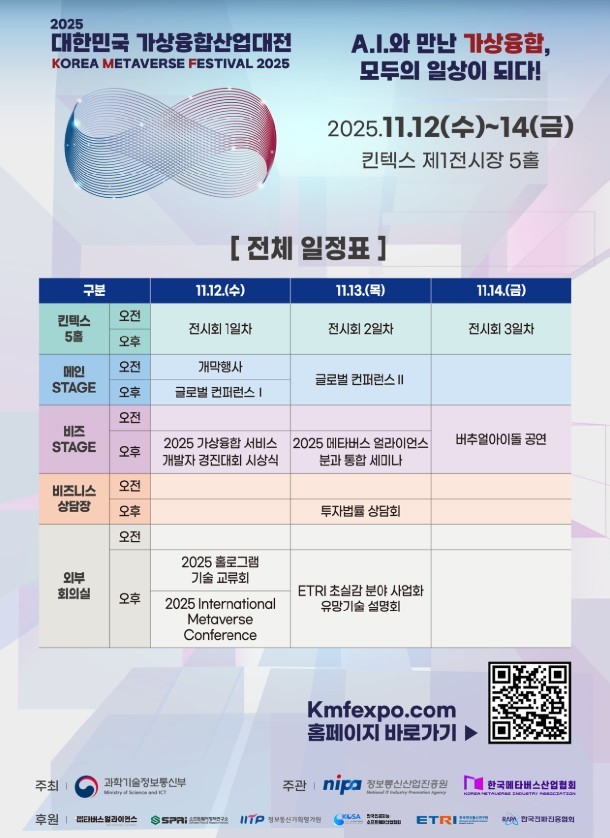 KMF 2025는 산업계·학계·정부가 한자리에 모여 가상융합 기술과 AI 융합의 현재와 미래를 논의하고, 실감형 체험을 통해 대중과 소통하는 국내 최대 가상융합 산업 축제로 자리매김할 전망이다.